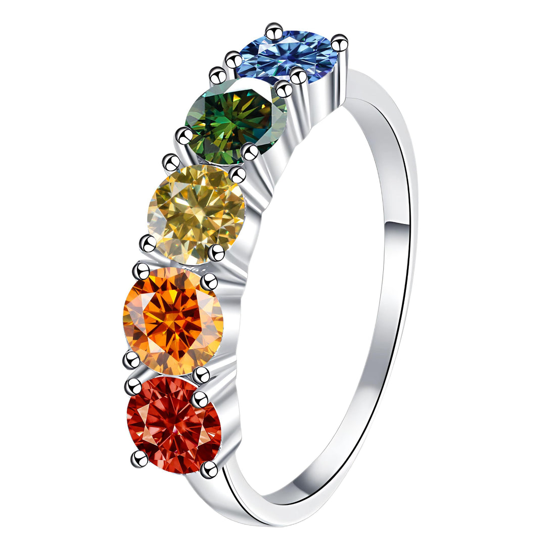 [#217] Five Stone Engagement Ring, 1ct Each, Total 5ct, VVS Moissanite, 925 Sterling Silver, Vibrant Color Options for Women