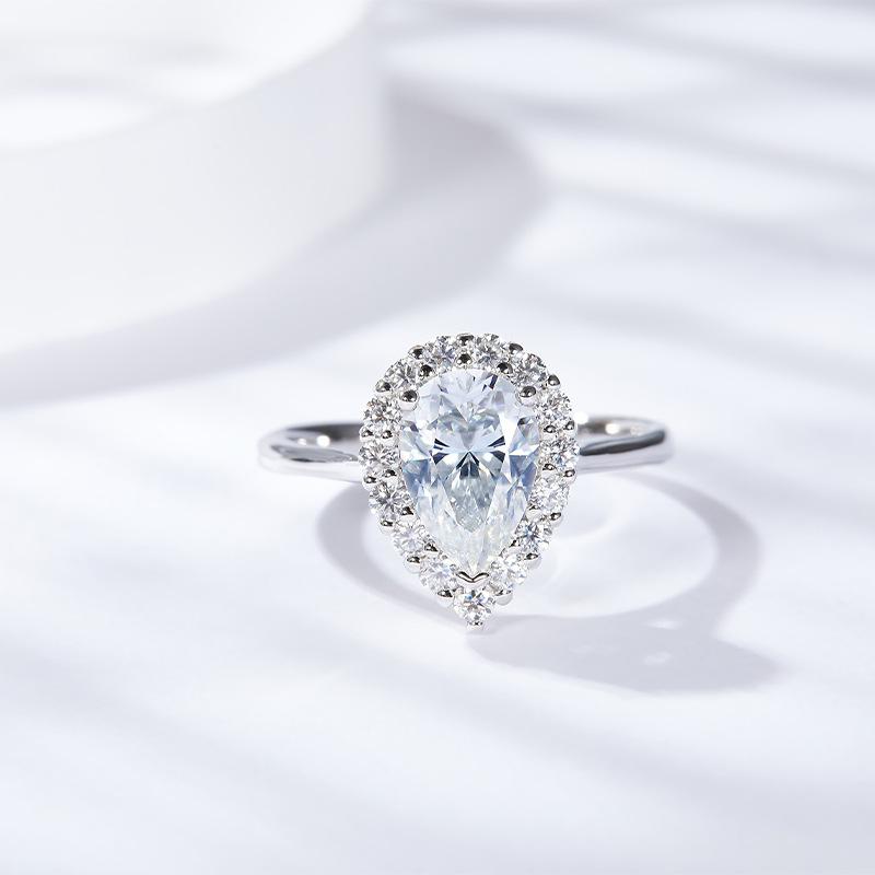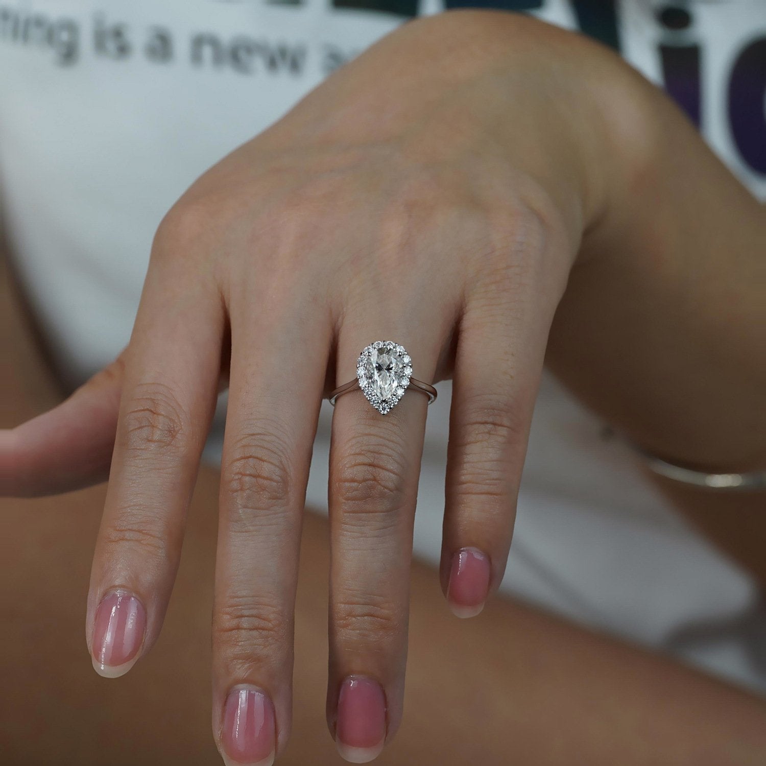 - Main Stone: 1.5ct Pear Cut Moissanite Diamond