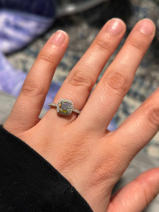 A bold cushion-cut stone delivers dramatic sparkle and presence, perfect for special occasions or everyday glamour.